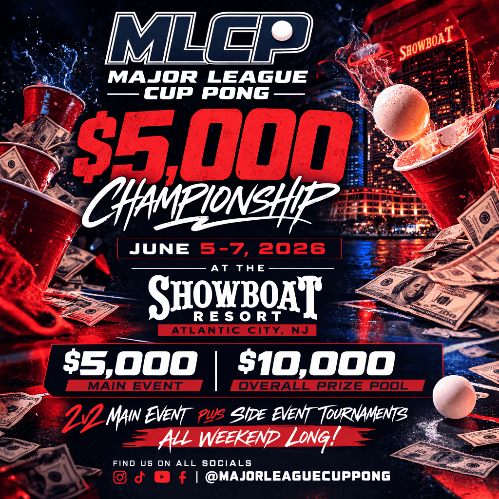 We’re excited to host the Major League Cup Pong $5,000 Championship from June 5–7, 2026! This action-packed three-day event will bring together the nation’s top cup pong competitors for an unforgettable weekend of high-stakes tournament play, thrilling side events, and nonstop entertainment. Get ready for intense competition, big prizes, and an electric atmosphere as the best players in the country battle it out for the title.