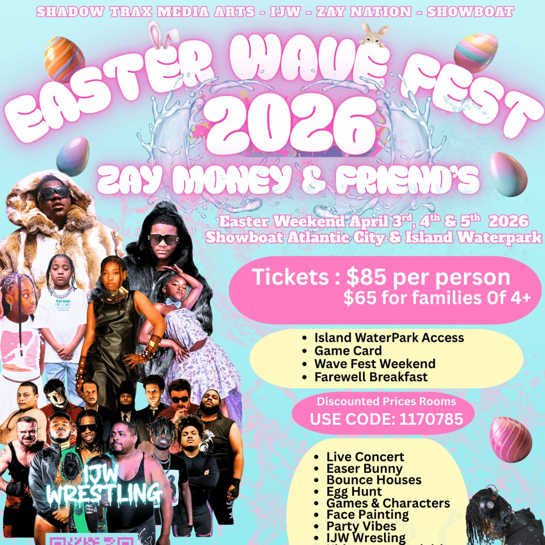 Easter WAVE FEST is a 3-day youth entertainment and empowerment festival designed to bring families together for an unforgettable spring celebration in Atlantic City. Held here at Showboat, this one-of-a-kind event combines live music, IJW wrestling entertainment, Fashion Show, entrepreneurship, and youth education into one powerful weekend experience. From April 3–5, 2026, attendees will enjoy a mix of fun, learning, and excitement. Get your tickets now!